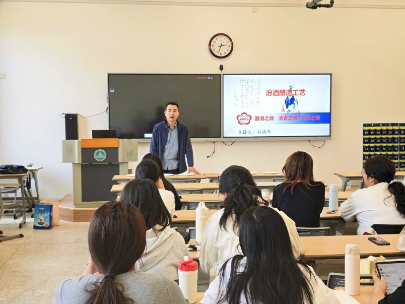 2026年4月14日,汾酒集团高级内训师、高级技师、汾酒酿造技能等级认定考评员、《汾酒清香飘万里》巡回讲师——孙海军老师来我院为食品科学与工程(酿造方向)本科生授课。